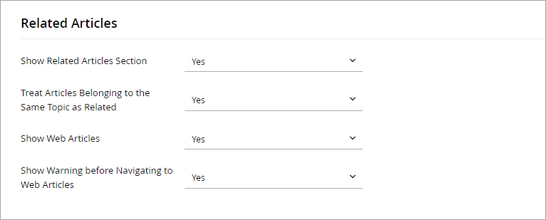 Show Web Articles: Select Yes if you want to display the web articles added to the related articles list on the portal.